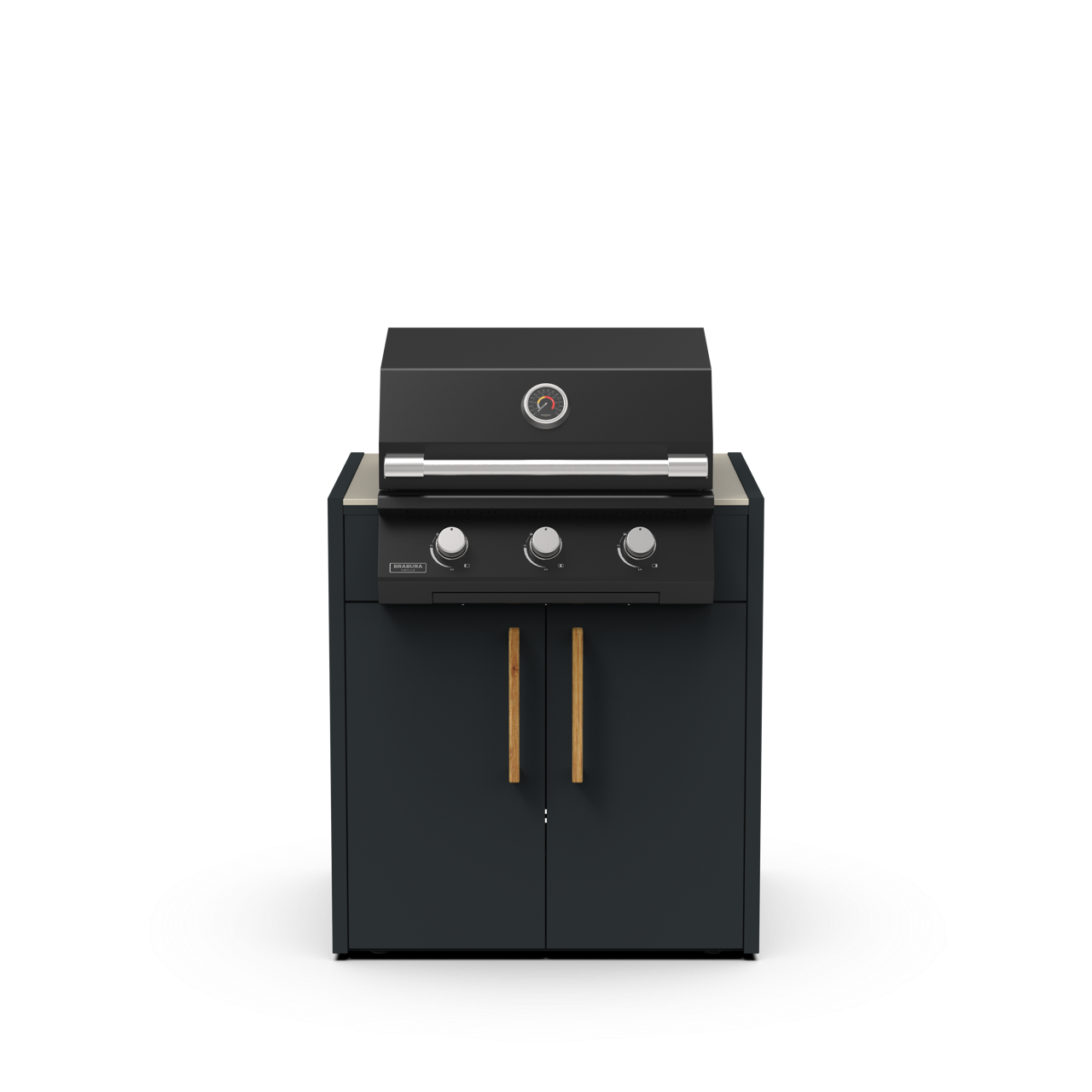 El sistema MODULA se integra de forma natural con barbacoas, planchas y zonas de cocción Brabura. Su diseño limpio y atemporal crea un conjunto visual coherente, aportando sensación de orden, amplitud y profesionalidad a tu espacio exterior.